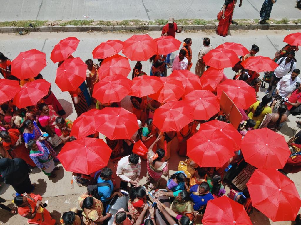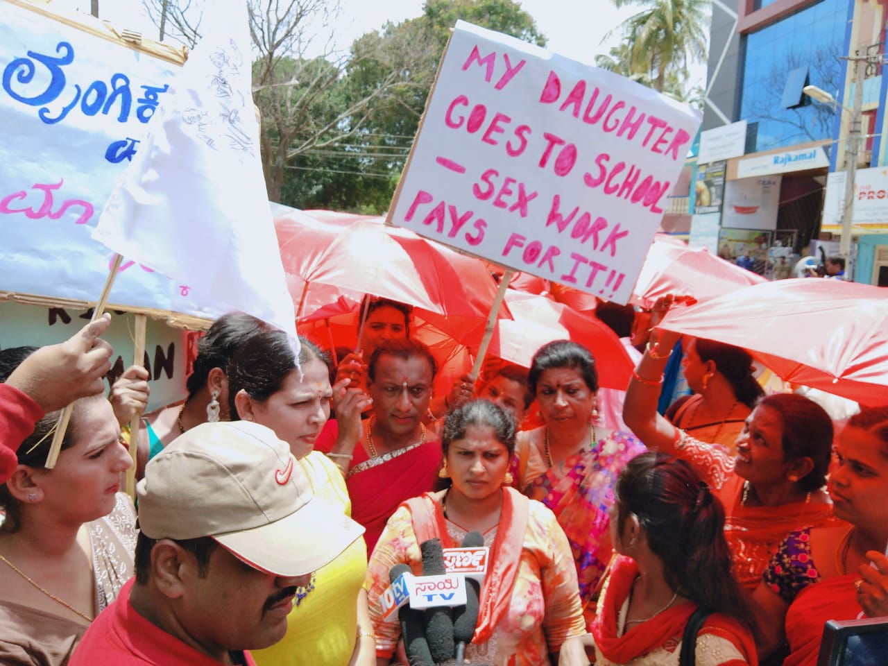 Hundreds of sex workers  walked a pride march on Saturday, 14th September 2019 in Mandya city in Southern Karnataka to celebrate International Sex Workers Pride Day- as declared by Global Network of Sex workers to commemorate the pride of sex workers and continue to advocate for workers’ rights for those practising sex work . Symbolically holding red umbrellas and placards reading ‘Sex Work is Work’, ‘My daughter goes to school- Sex Work pays for it’  and ‘I demand workers’ rights’ among many others, this silent march on the streets of Mandya is an expression of their aspiration to integrate into mainstream society. These marginalised street based sex workers have been fighting violence, stigma and discrimination.